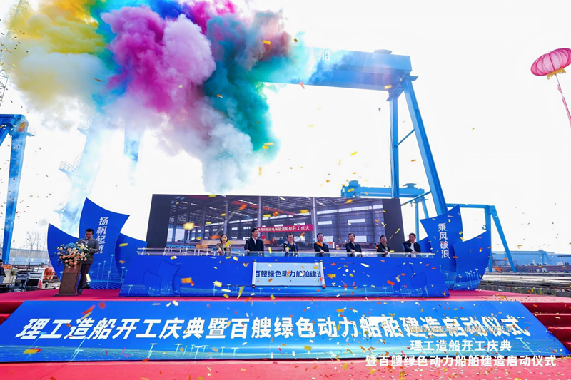 3月28日,理工造船(鄂州)股份有限公司开工庆典暨百艘绿色动力船舶建造启动仪式在鄂州市华容区隆重举行。